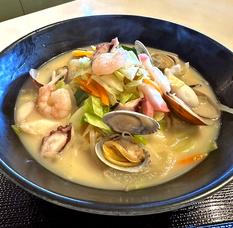 あっさりスープにたっぷりの野菜・海鮮(アサリ・タコ)を使用して仕上げました。健康的で安心してお食事していただくことを常に心がけています。